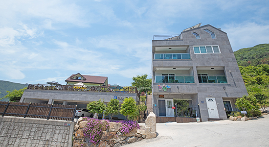 거제도 고현행(또는 장승포행)시외버스 → 고현시외버스정류장 하차 → 바로옆시내버스정류장-학동행버스(30분) → 학동삼거리하차